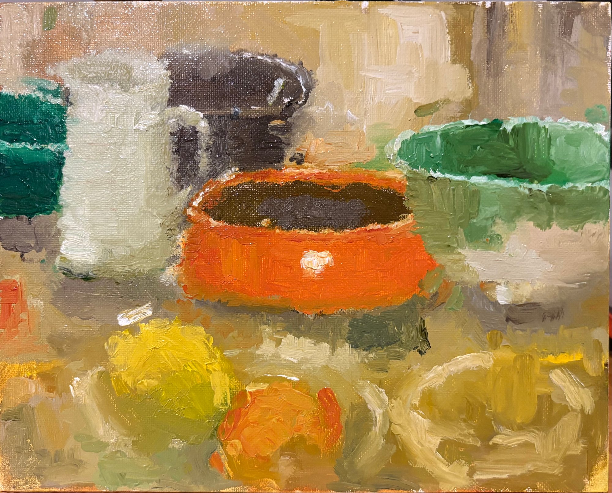 Still life with bowls and fruit